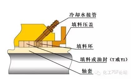 在機械行業(yè)中填料密封主要用作動密封,常用作離心泵、壓縮機、真空泵、攪拌機的轉(zhuǎn)軸密封。填料裝入填料腔以后,經(jīng)壓蓋螺絲對它作軸向壓縮,當(dāng)軸與填料有相對運動時,由于填料的塑性,使它產(chǎn)生徑向力,并與軸緊密接觸。與此同時,填料中浸漬的潤滑劑被擠出,在接觸面之間形成油膜。由于接觸狀態(tài)并不是特別均勻的,接觸部位便出現(xiàn)