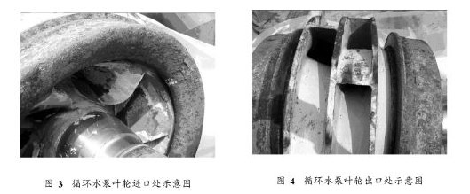 采取上述措施后,從2008、2009年兩次新、老系統(tǒng)的大修情況來看,循環(huán)水泵葉輪的汽蝕有了很大的改觀,葉輪腐蝕的面積大為減輕,基本上未出現(xiàn)腐蝕穿孔的現(xiàn)象,效果明顯。從運行情況看,機組運行穩(wěn)定。圖3、圖4是2009年大修中一臺循環(huán)水泵葉輪的進(jìn)、出口端腐蝕情況照片,可以看出吸入口汽蝕情況較輕,出口端幾乎未被腐蝕。