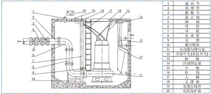 • 泵體進行檢修時,人不用進入集水井(坑)內(nèi),可采取人工或機械的方法將泵體從集水井(坑)中用與泵體相銜接的鐵鏈提出。依據(jù)泵體分量的大小及實踐需求,晉升支架可制成永恒性支架或暫時性支架兩種。晉升支架上設電動、手動葫蘆或滑輪與晉升鐵鏈相干聯(lián)接。