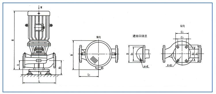 ISGB型便拆立式管道離心泵安裝尺寸圖: