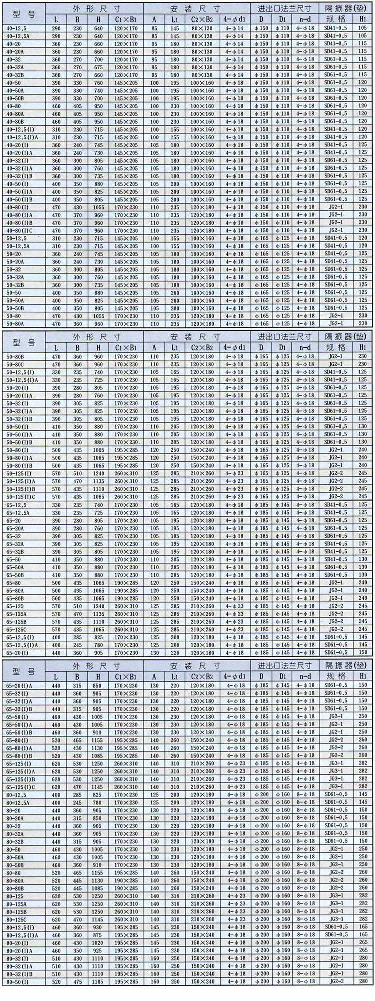 ISGB型便拆立式管道離心泵安裝尺寸表: