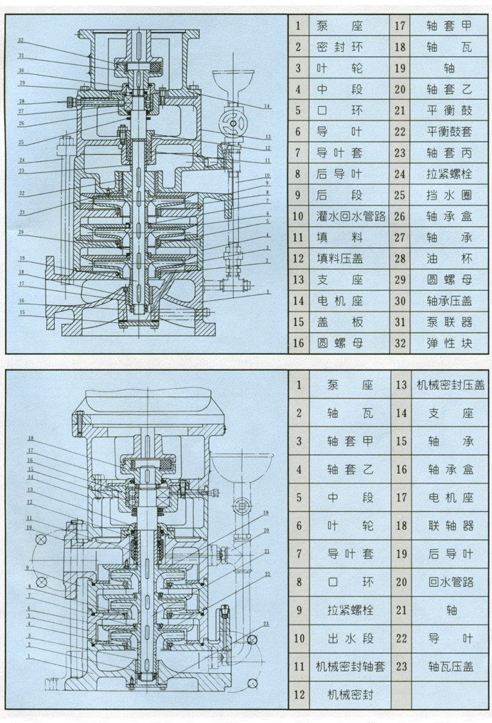 多級泵的拆裝 DG 型高壓水泵是多級分段式結(jié)構(gòu)的離心泵,在對其解體前應(yīng)先熟悉圖紙,了解泵的結(jié)構(gòu)及拆裝順序,避免因失誤而造成部件的損傷。同時(shí),隨著解體的進(jìn)行,及時(shí)測取各有關(guān)數(shù)據(jù),以便組裝時(shí)參考。下面按順序來介紹泵的解體。 1、軸瓦拆卸及軸瓦間隙的測量 在拆卸多級泵時(shí),首先應(yīng)對其兩端的軸承(一般為滑動(dòng)軸…