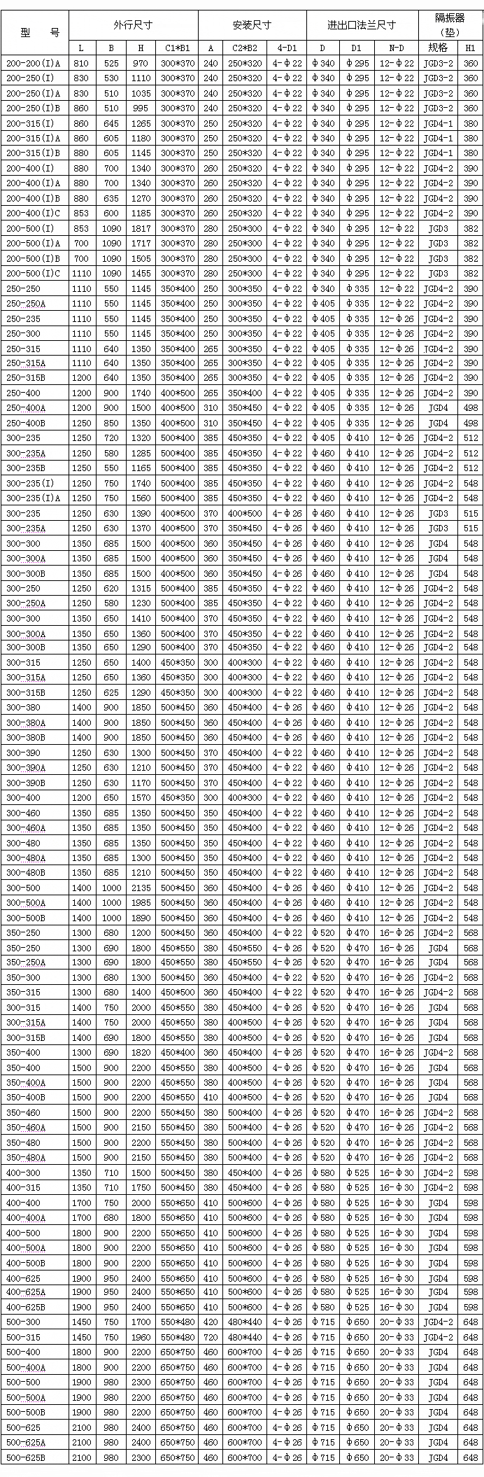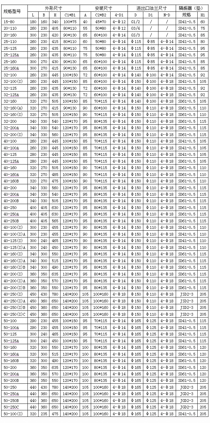 ISG、IRG、GRG、IHG、YG、ISHB型外形安裝尺寸表:
