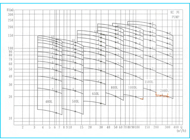 DL型立式多級離心泵是采用國家推薦使用的高效節(jié)能產(chǎn)品IS型泵的水力模型,為立式多級多節(jié)段式結(jié)構(gòu)。螺桿把進(jìn)水段、中段、出水段夾緊聯(lián)成一體。水泵每一級裝一個葉輪、一個導(dǎo)水葉。軸向力采用水力平衡法解決,殘余軸向力由球軸軸承承受,用油脂潤滑。軸封采用軟填料或機(jī)械密封。產(chǎn)品執(zhí)行JB/T2727-93《立式多級離心泵型式與基本參數(shù)》標(biāo)準(zhǔn),主要供吸送稀釋的、清潔的、不腐蝕的、不爆炸的清水及物理化學(xué)性質(zhì)類似水的不含固體顆粒或纖維的液體。