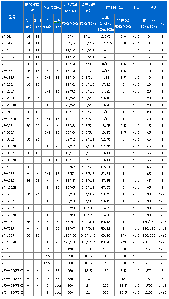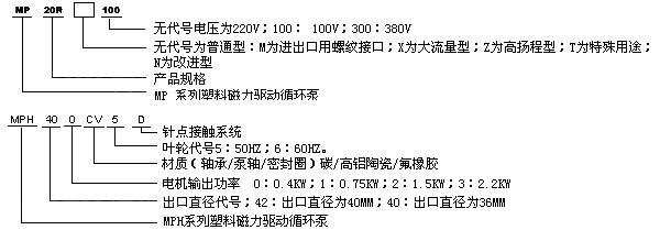 二、MP系列磁力驅(qū)動(dòng)循環(huán)泵新性能參數(shù):