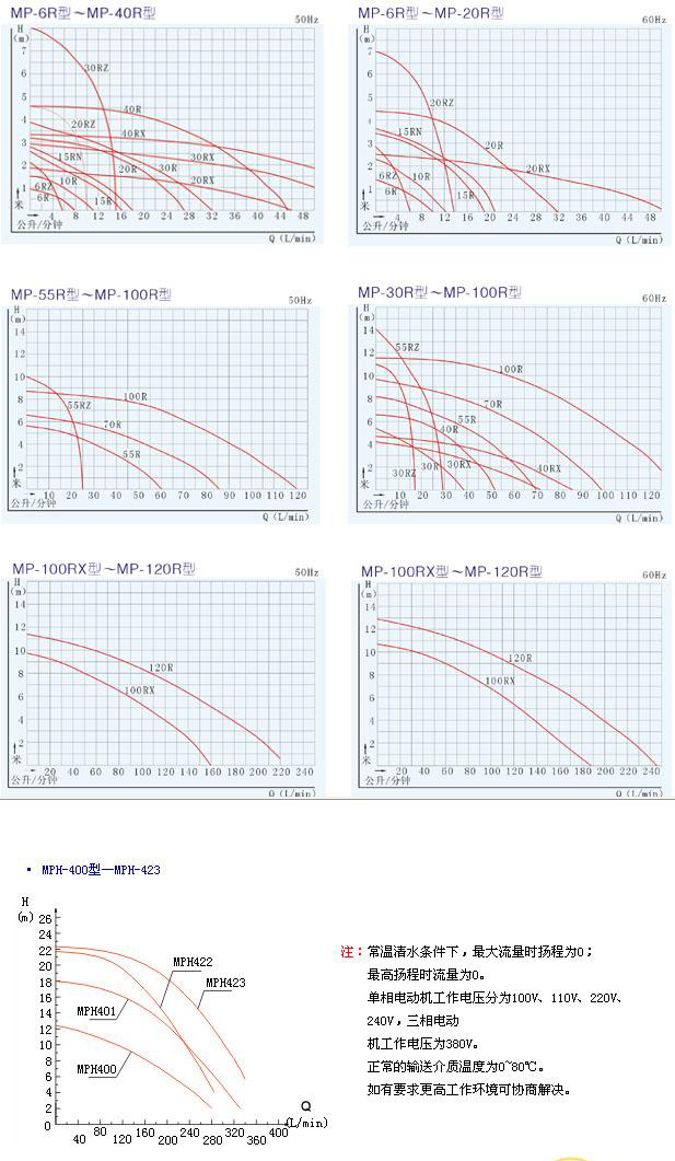 一、MP系列磁力驅(qū)動(dòng)循環(huán)泵性能曲線圖: