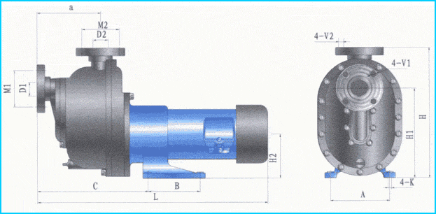 ZCQF型四氟自吸磁力泵外形安裝尺寸圖: