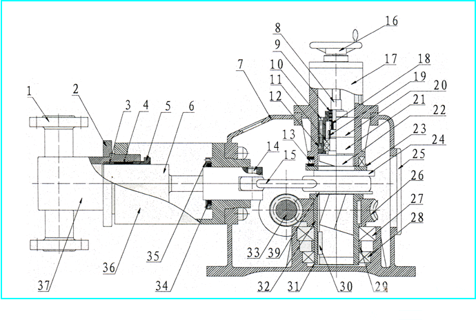 6 柱塞 16 調(diào)節(jié)手輪 26 蝸輪 36 泵頭連接頭