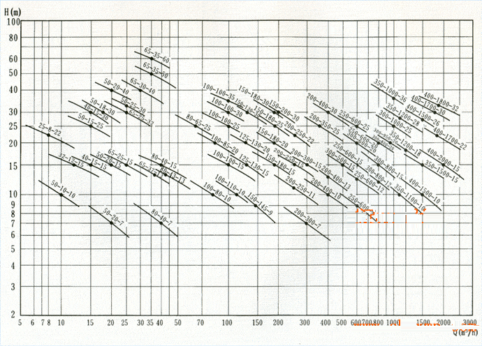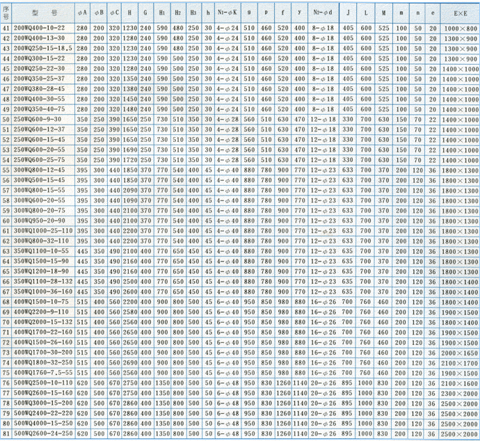 序號 型號 口徑mm 流量m3/h 揚程m 功率KW 轉(zhuǎn)速r/min 效率%